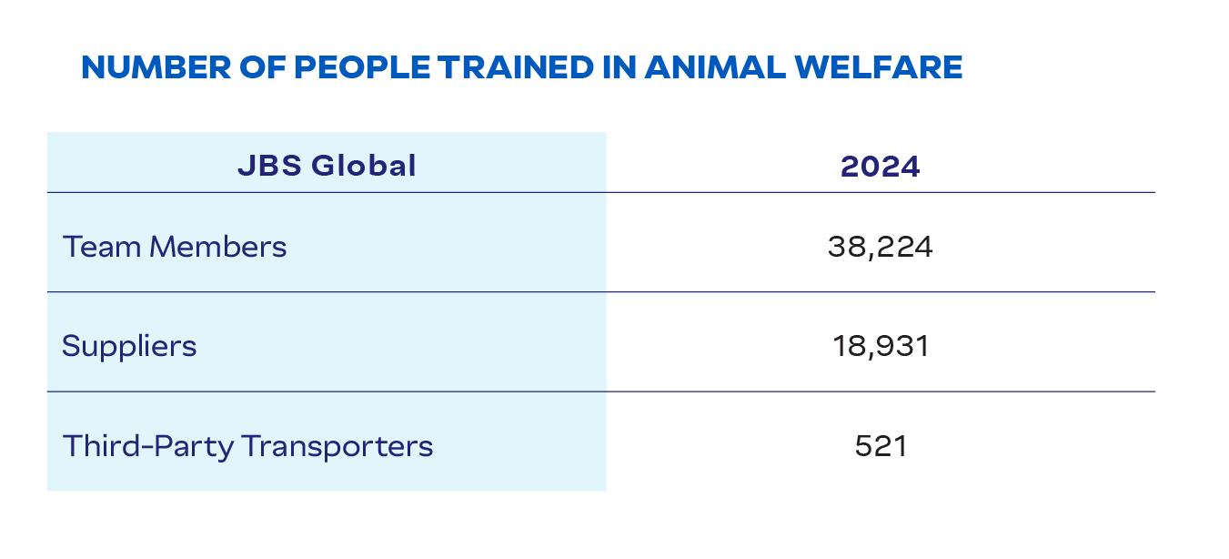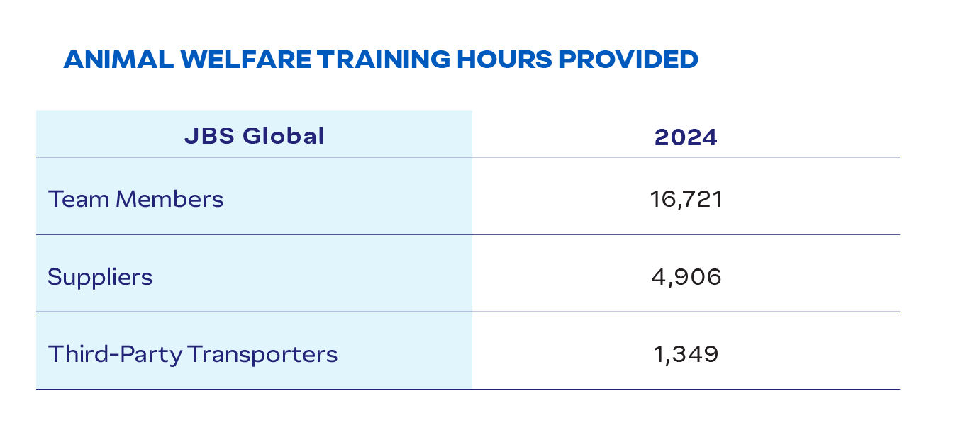 We have implemented comprehensive animal welfare programs on farm, during transport, and at our processing facilities that are grounded in science and supported by a foundation of training, audits, research, and measurement. Our animal welfare policies and procedures, including the JBS Global Animal Welfare Policy, are aligned with local laws and internationally recognized standards, including the Five Domains Model – a science-based framework for assessing, measuring, and continuously improving animal welfare.