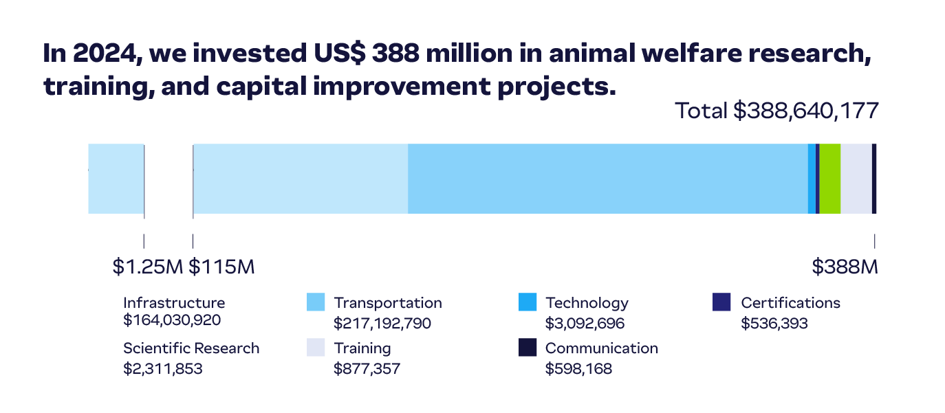 We assess animal welfare performance through ongoing monitoring of KPIs and regular audits. The findings are carefully analyzed to identify opportunities for improvement, and corrective actions are implemented as needed in alignment with our policies.