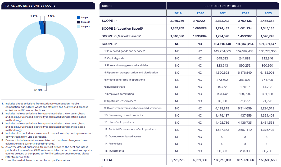 - Ajustar as linhas de referência de emissões para refletir melhor as cadeias de suprimentos globais da JBS.